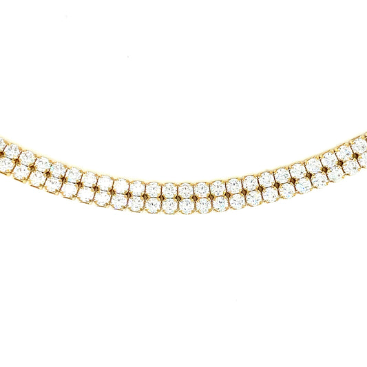 10K Yellow Gold Semi-Solid CZ Tennis Chain 2 Row 4.5mm 22" Weight 15.