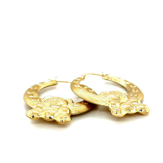 10K Y.Gold "XO" Hearts Medium Hoop Earrings 1.5"