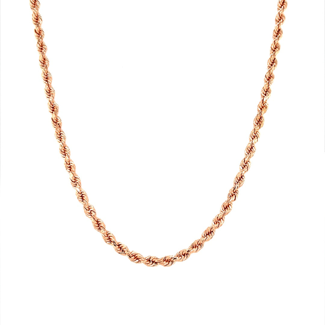 10K Rose Gold Semi-Solid Rope Chain 3.5mm 24"