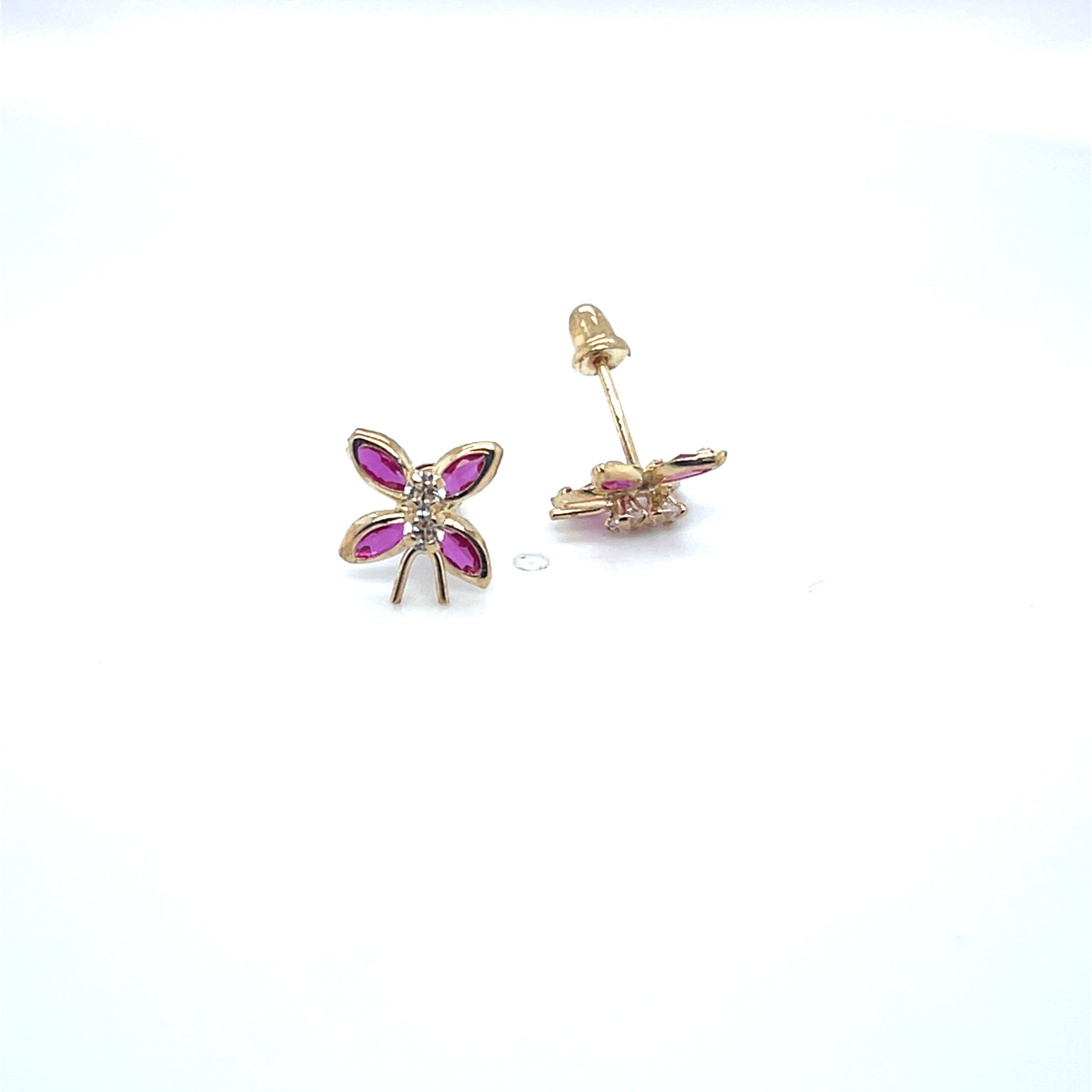 14K YG Screw back Red CZ Butterfly Stud Earrings