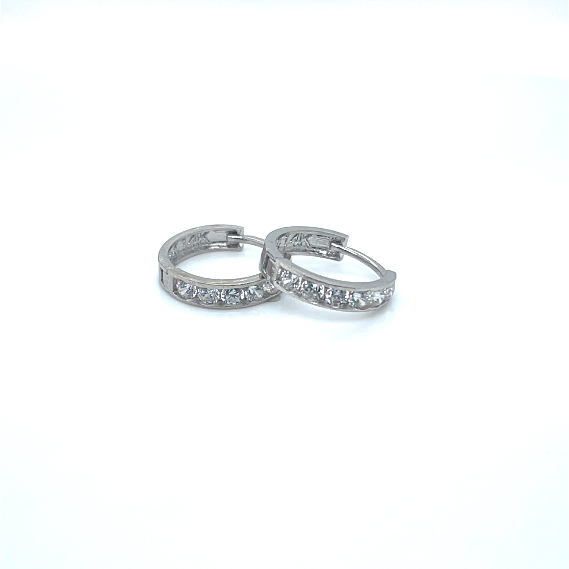 14K White Gold CZ Huggie Earrings