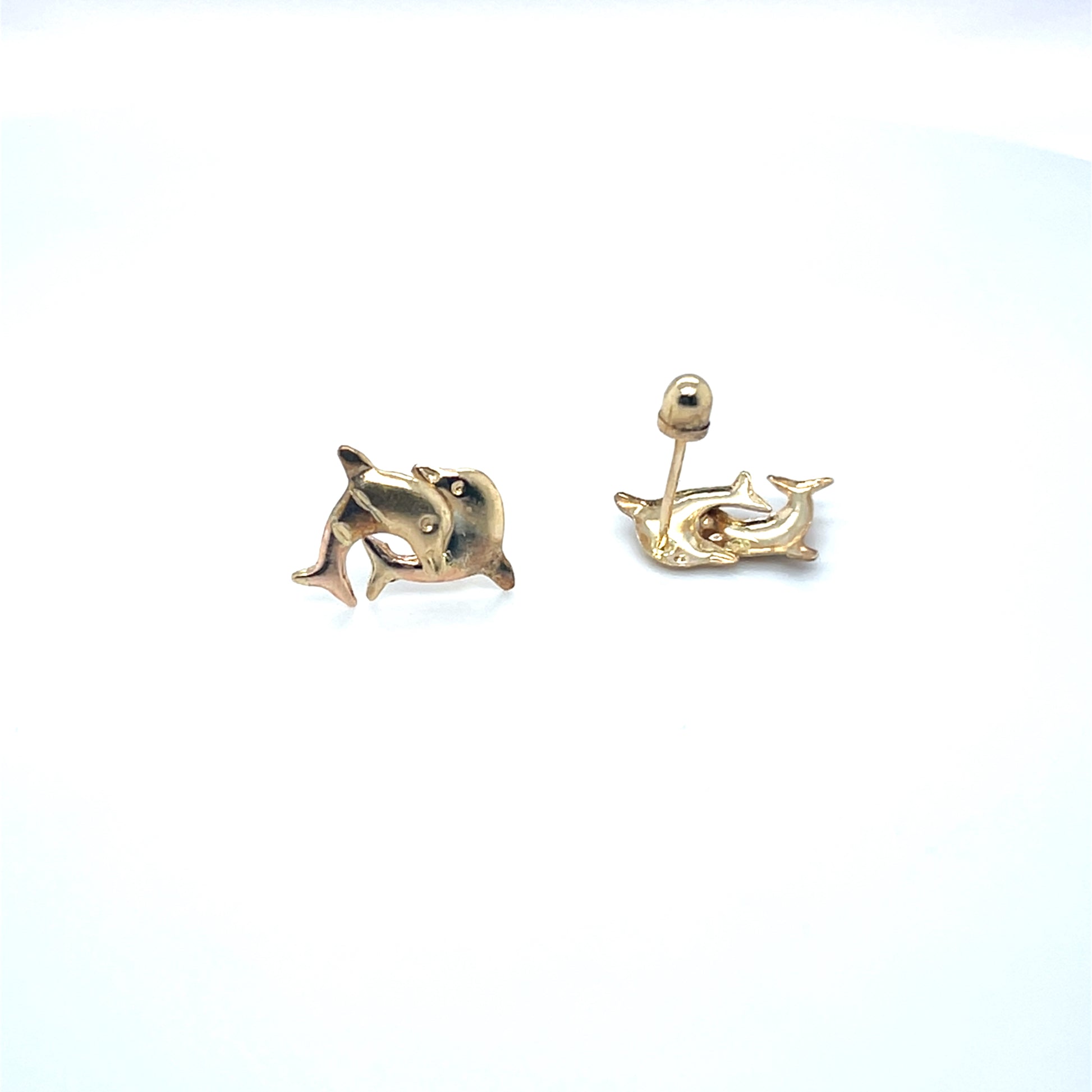 14K Gold 3-Tone Dolphin Pair Earrings (Screw back)
