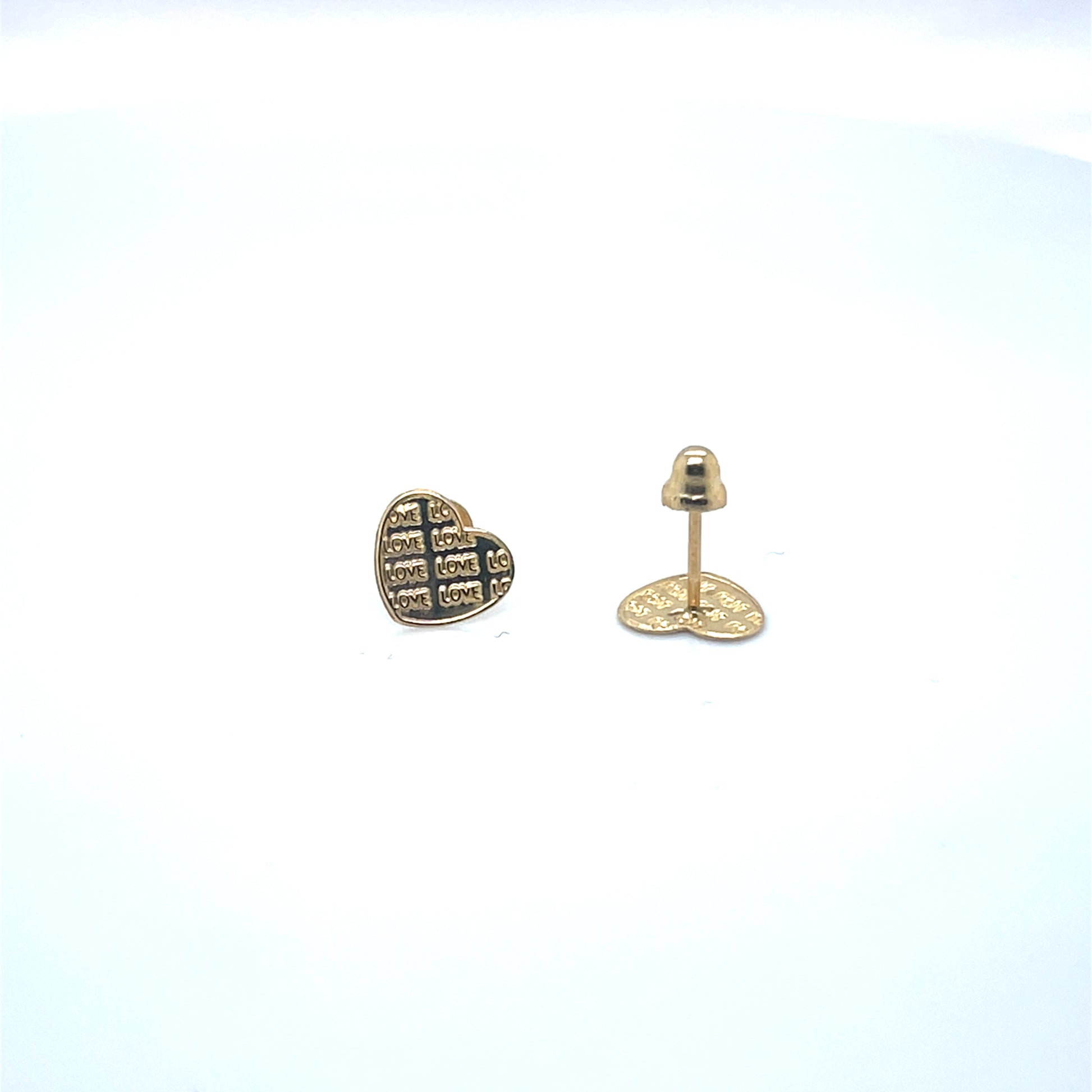 14K Y.Gold Screw-Back Stud Earrings Hearts "LOVE"